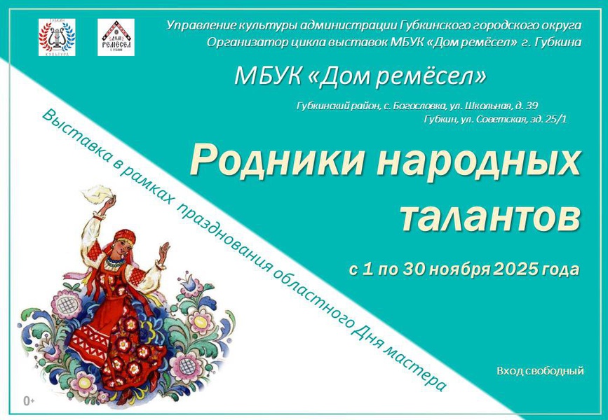 Цикл выставок декоративно-прикладного творчества и изобразительного искусства «Родники народных талантов» в рамках празднования Дня мастера с 1 ноября 2025 года по 30 ноября 2025 года