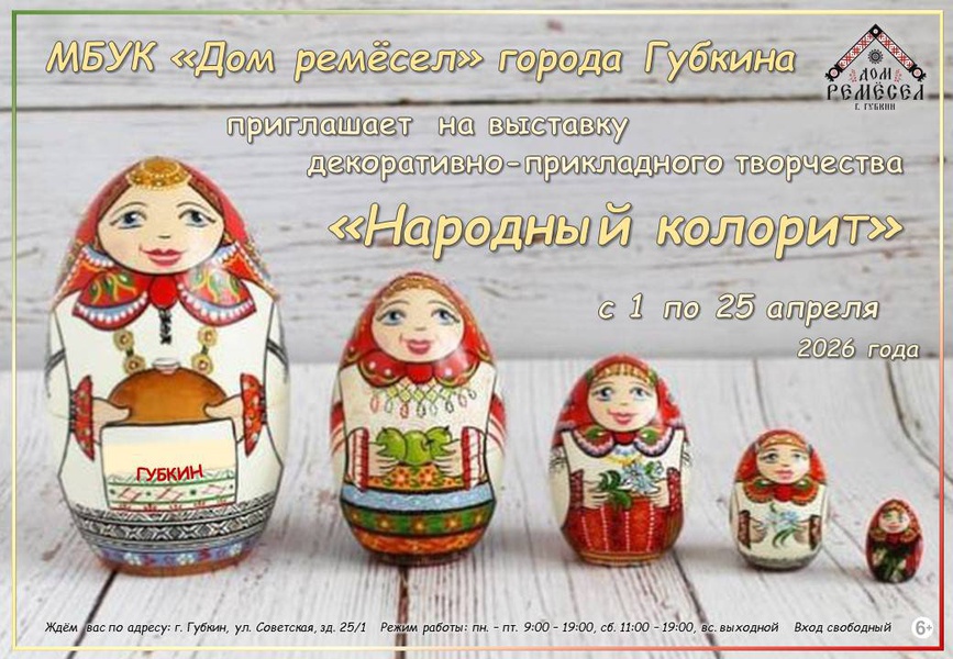 Выставка декоративно-прикладного творчества «Народный колорит» с 1 апреля по 25 апреля 2026 года
